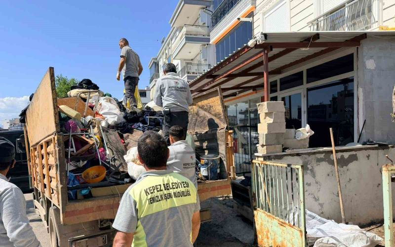 Antalya Kepez Belediyesi, mahalle sakinlerinin şikayeti üzerine bir evde temizlik operasyonu gerçekleştirdi. Kütükçü Mahallesi’nde yaşayan 44 yaşındaki İ.K.’ye ait müstakil evin bahçesinde zamanla biriktirilen evsel atıklar, mahallede kötü koku ve çevre kirliliğine yol açtı. Kötü koku ve görüntü kirliliği üzerine mahalle sakinleri durumu mahalle muhtarlığına bildirdi. Kütükçü Mahalle Muhtarı Meryem Erkal’ın da, konuyu Kepez Belediyesine iletmesi üzerine ekipler harekete geçti. Temizlik İşleri Müdürlüğü ve Zabıta Müdürlüğü ekipleri, kolluk kuvvetlerinin desteğiyle Kütükçü Mahallesi’ndeki 2971 Sokak’taki müstakil evde kapsamlı bir çalışma başlattı. Gün boyu süren çalışmalar sonucunda evin bahçesi ve çevresinden 4 kamyon çöp çıkarıldı.