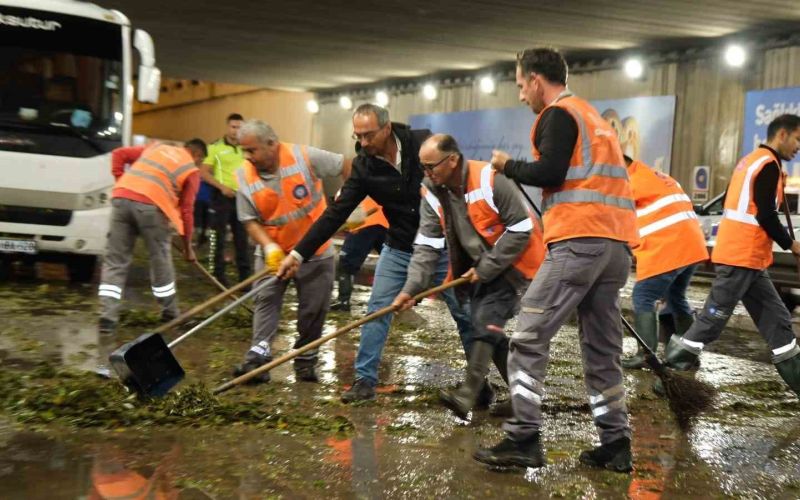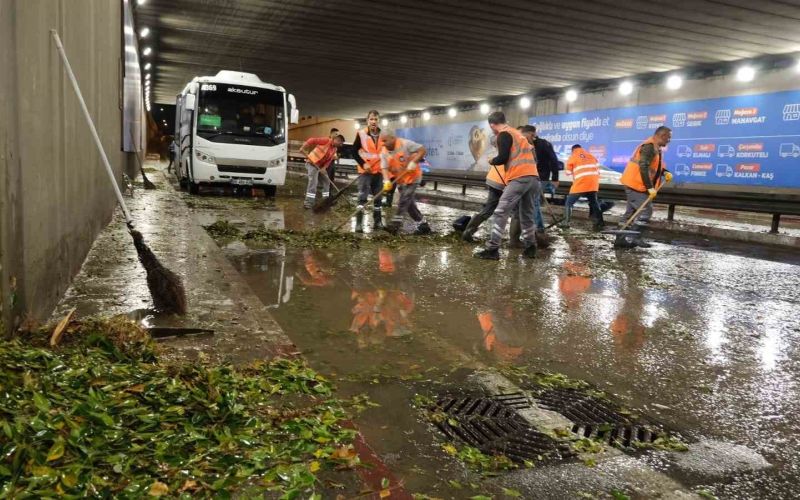 Aniden etkili olan sağanak yağışın ardından Antalya Büyükşehir Belediyesi ASAT Genel Müdürlüğü ekipleri de kısa sürede sahaya indi. Kentin farklı noktalarından gelen ihbarlara hızla müdahale eden ekipler, ana arterler başta olmak üzere dolu yağışı nedeniyle dökülen ve yağmur sularının taşıdığı yaprakların tıkadığı mazgalları temizlendi. Ekiplerinin en yoğun çalışması ise alt geçitlerde oldu. ASAT ekipleri ile Çevre Koruma ve Kontrol Dairesi Başkanlığı ekipleri aşırı yağış nedeniyle polis tarafından trafiğe kapatılan Falez Alt Geçidi’nin trafiğe açılması için temizlik çalışması yaptı. Yoğun bir çalışmayla hızla tamamlanan temizliğin ardından alt geçit kısa süre sonra trafiğe açıldı.
