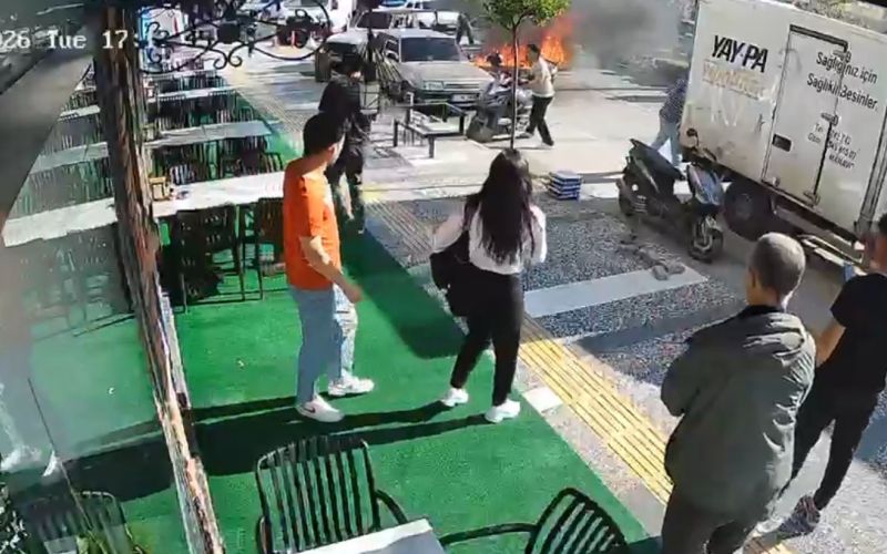 Antalya’nın Manavgat ilçesinde trafik ışıklarında bekleyen otomobilde bir anda patlama yaşandı. Kısa sürede alev topuna dönen araçtaki sürücü anne ile bebeği ve diğer yolcular kendilerini son anda dışarıya attı. Araç çevredekilerin yangın tüpleriyle müdahalesinin ardından söndürüldü.
