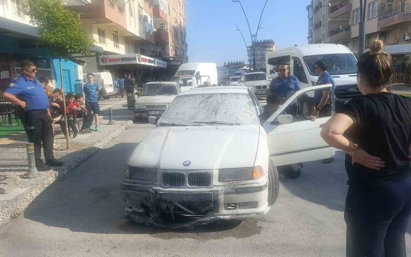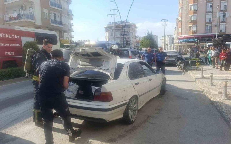 Edinilen bilgiye göre, Barbaros Caddesi’nde Salkımevler Mahallesi istikametine seyir halindeki Kübra Ş.’nin kullandığı 07 CJD 453 plakalı BMV marka otomobil, Salkımevler ışıklı kavşağında kırmızı ışıkta beklediği sırada aniden yanmaya başladı. Yangının başlamasıyla birlikte aralarında küçük bir bebeğinde bulunduğu araçtakiler kendilerini araçtan dışarı atarken, çevredeki esnaf yangın tüpleriyle yanan araca müdahalede bulunarak yangını söndürdü. Güvenlik kamerasına saniye saniyesine yansıyan yangın sırasında Manavgat Emniyet Müdürlüğü’ne bağlı ekipler çevrede gerekli güvenlik önlemini alırken Antalya Büyükşehir Belediyesi İtfaiyesi Manavgat Birimi’ne bağlı ekipler araçta soğutma çalışması yaptı. Alevlere yangın söndürme tüpüyle müdahale eden esnaf, otomobilin bin anda alev aldığını ve görür görmez müdahale ettiklerini belirterek, "Arkamı döndüm otomobilin yandığını gördük yangın söndürme tüpüyle hemen müdahale ettik ardından itfaiye ekipleri gelerek müdahale ettiler" dedi.