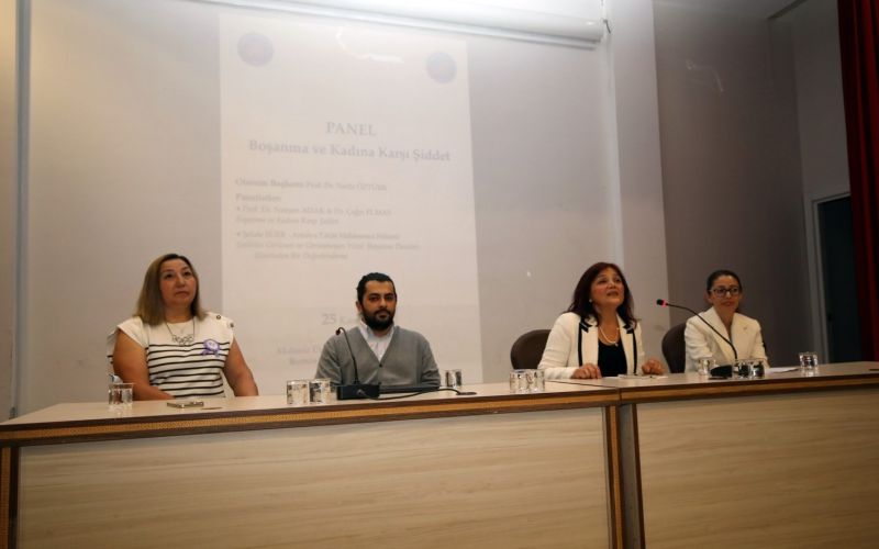 Açılış konuşmasının ardından oturum başkanlığını Hukuk Fakültesi Dekanı Prof. Dr. Necla Öztürk’ün yaptığı panelde, Edebiyat Fakültesi Dekanı Prof. Dr. Nurşen Adak ve Dr. Çağrı Elmas "Boşanma ve Kadına Karşı Şiddet" konusunu ele alarak katılımcılara sundu.