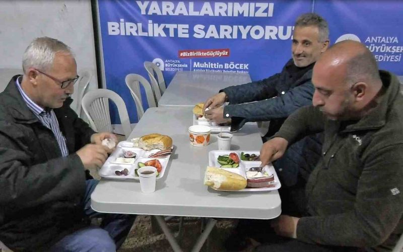Nurdağı ve İslahiye ilçelerinde iftar çadırları kuran Antalya Büyükşehir Belediyesi, sahur ve iftarlarda her gün bin 500 kişilik yemek ikramında bulunuyor. Büyükşehir ekipleri, bunun yanında mobil ekiplerle mahallelere giderek iftar öncesi yemek dağıtımında bulunuyor. Antalya Büyükşehir Belediyesinin çalışmalarından dolayı memnun olduklarını dile getiren Gaziantepli depremzedeler, ekiplere teşekkür etti.