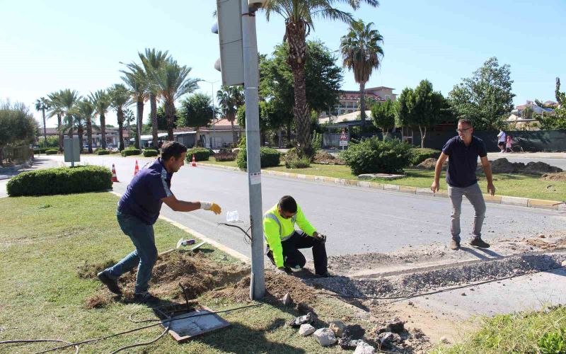 Antalya Büyükşehir Belediyesi ekipleri, Manavgat’ta ekonomik ömrünü tamamlamış olan trafik lambaları ve sinyalizasyon altyapı sistemlerini yenilemek için çalışma başlattı.
