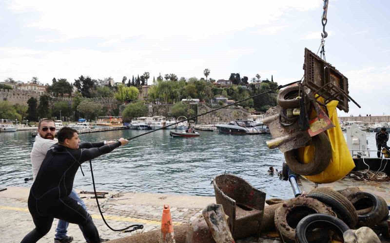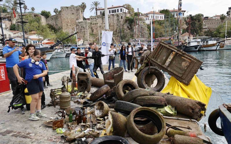 Antalya Büyükşehir Belediyesi, yaz aylarına sayılı günler kala deniz temizliğinde farkındalık oluşturmak amacıyla Sivil Toplum Kuruluşları ve gönüllü dalgıçlarla Kaleiçi Yat Limanı’nda deniz dip temizliği yaptı. Bir saatlik dalışta denizden çıkan çöpler görenleri şaşkına çevirdi. Yaklaşık 5 ton çöp çıkartılırken, denizin dibinden araç lastiği, demir parçaları ve teneke şişelere kadar birçok çöp atığı çıktı.