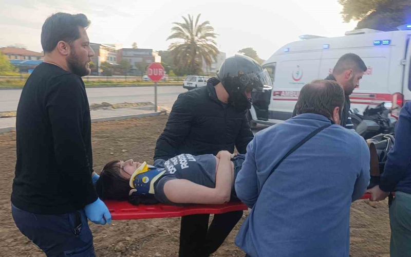 Antalya’nın Manavgat ilçesinde otomobille çarpışan motosiklet 20 metre ileriye fırladı. Toprak zemine düşen motosiklet sürücüsü ve yolcu yaralandı.