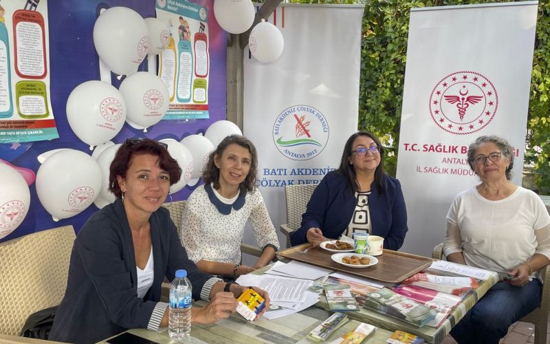 Çölyak hastalığına dikkat çekilerek toplumda farkındalık oluşturma ve sağlıklı beslenme bilincini artırmanın amaçlandığı etkinliğe Antalya İl Halk Sağlığı Müdürlüğü’nden hekimler ve diyetisyenler de katıldı. Uzmanlar, çölyak hastalığı, glutensiz beslenmenin önemi, besinleri doğru pişirme teknikleri ve sağlıklı beslenme alışkanlıkları hakkında bilgilendirmelerde bulundu.