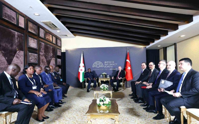 Cumhurbaşkanı Recep Tayyip Erdoğan, 5. Antalya Diplomasi Forumu (#ADF2026) için Türkiye’de bulunan Burundi Cumhurbaşkanı Evariste Ndayishimiye ile bir görüşme gerçekleştirdi. Liderler Türkiye-Burundi ikili ilişkileri ve bölgesel konuları ele aldı.