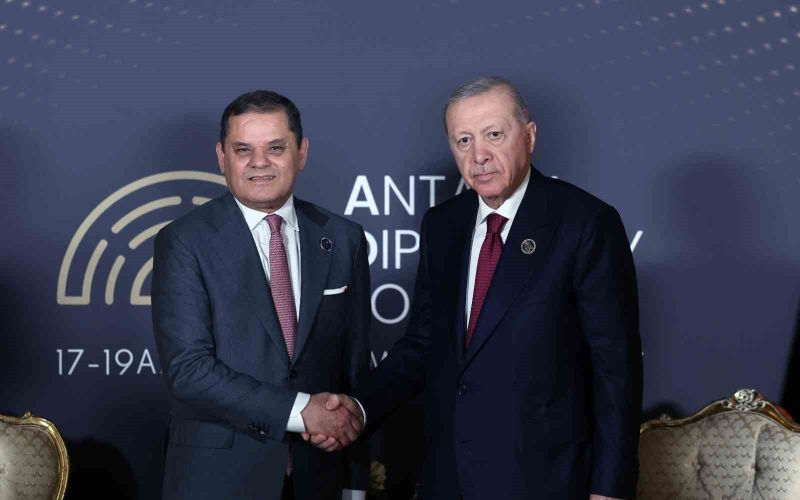 Cumhurbaşkanı Erdoğan, 5. Antalya Diplomasi Forumu (#ADF2026) için Türkiye’de bulunan Libya Milli Birlik Hükümeti Başbakanı Abdülhamid Dibeybe bir araya geldi. Cumhurbaşkanı Erdoğan, Türkiye’nin Libya’da, Libyalıların sahiplenmediği hiçbir girişimin başarılı olamayacağını sıklıkla vurguladığını, siyasi tasarrufların geniş tabanlı istişare ve diyalogla ilerletilmesinin önemli olduğunu, Türkiye’nin sürece desteğinin devam edeceğini söyledi.
