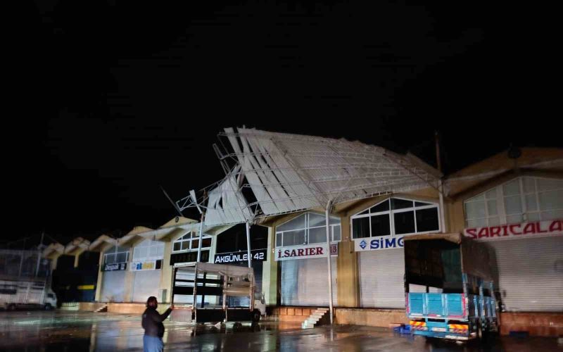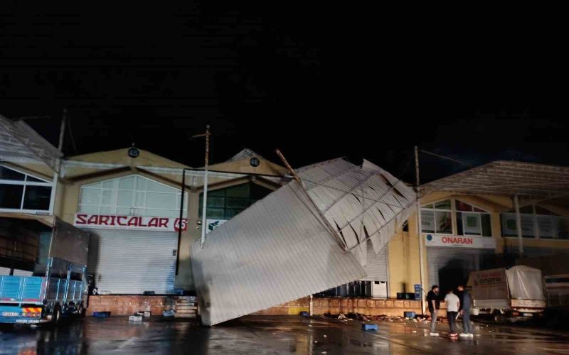 Antalya’nın Demre ilçesinde meydana gelen hortum nedeniyle toptancı halindeki bir işyerinin çatısı zarar gördü, Kaş ilçesinde de sağanak etkili oldu.