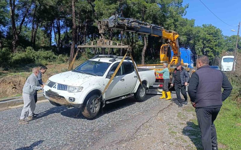 Falezlerde mahsur kalan kediyi film gibi operasyonla kurtardılar
