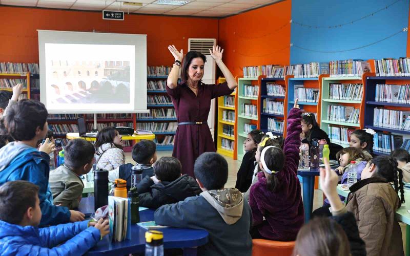 Antalya Büyükşehir Belediyesi’nin kültür ve eğitim çalışmaları kapsamında, Doğan Hızlan Kütüphanesi çocukları kitapların dünyasıyla buluşturmaya devam ediyor. Kütüphanede gerçekleştirilen söyleşi ve atölye etkinliğinde çocuklar, yazar Burcu Bahar’la bir araya gelerek okumanın yazmaya nasıl eşlik ettiğini, hikâyelerin nasıl kurulduğunu ve kitaplarla bağ kurmanın önemini deneyimledi.