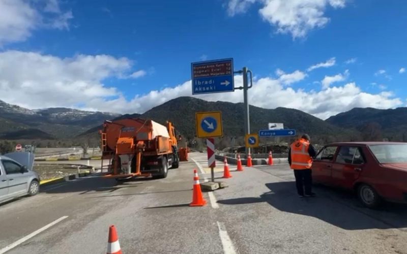 Antalya Taşağıl istikametinden bu güzergâhı kullanan sürücüler, İbradı ilçesi Başlar Mahallesi kavşağında Karayolları ekipleri tarafından durdurularak Beyşehir yönüne giden yola geçişleri kapatılıyor ve trafik Akseki istikametine yönlendiriliyor.