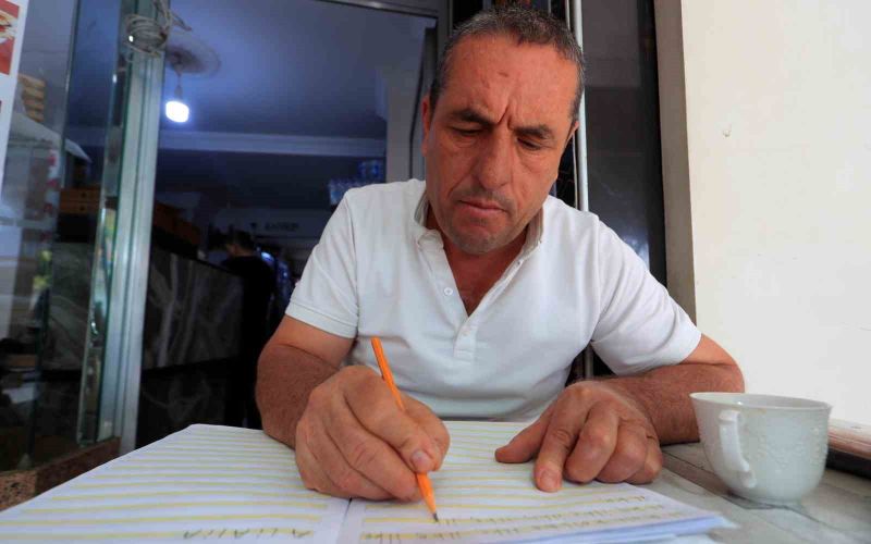 Muratpaşa ilçesinde çay ocağı işleten 48 yaşındaki Fuat Aydın, çocukluğunda imkansızlıklar nedeniyle okula gidemedi. Yaşıtları okula giderken küçük yaştan itibaren köyünde çobanlık yapan Aydın, gençlik yıllarında köyünden büyükşehire gitti. Yaşamı boyunca turizm başta olmak üzere çeşitli sektörlerde hayat mücadelesi veren Aydın, son olarak çay ocağı işletmeciliği yapmaya başladı. Birkaç yıl önce kendisine bir otomobil alan Aydın, ehliyet sahibi olabilmek için okuma-yazma öğrenmeye karar verdi. Azize Kahraman Halk Eğitim Merkezi Okuma-Yazma Kursu’na kayıt olan Aydın, yaklaşık bir haftadır kursa gidiyor. İş yerinde defter, kalem ve silgisini bir an olsun yanından ayırmayan Aydın, çay ocağına gelen müşterilere bir yandan çay servisi yaparken bir yandan da derslerine çalışıyor.