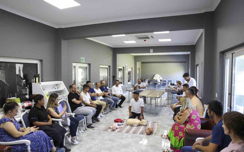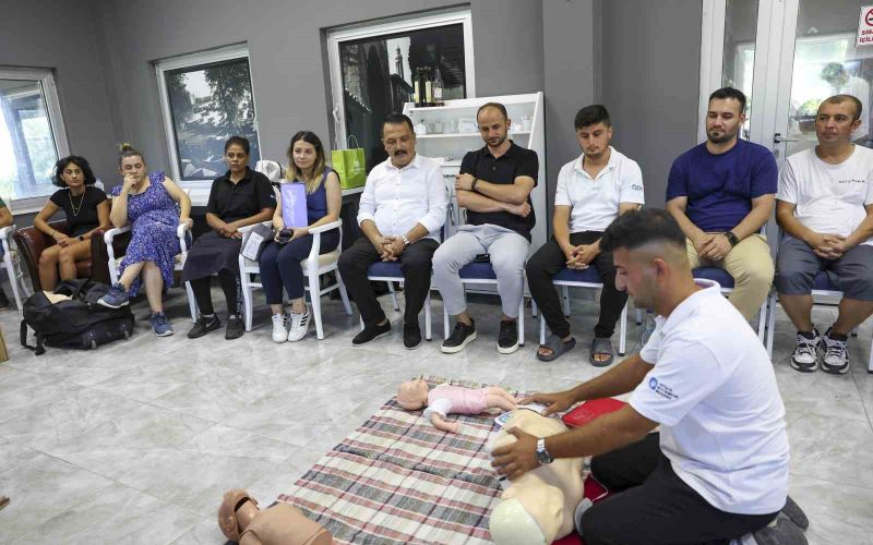 Antalya Büyükşehir Belediyesi sosyal tesislerinde çalışan personeller, misafirlerin bir sağlık problemiyle karşılaşması durumunda ilk müdahaleyi yapabilmeleri amacıyla ilk yardım eğitiminden geçiyor.