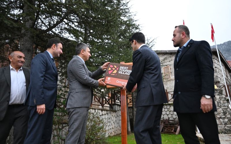 Antalya Valisi Hulusi Şahin, İbradı ziyareti kapsamında Ormana Mahallesi’ne "En İyi Turizm Köyü" unvanı tabelasını yerleştirdi.