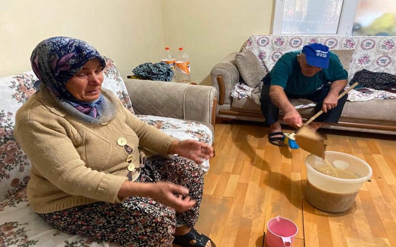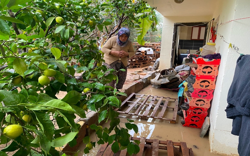 Şafak, “Gece şiddetli yağmur yağıyordu, oğlum eve geldi. ‘ Anne bekleme uyu, bir şey yok’ dedi. Yatağa girdim 10 dakika geçti, bir hışırtı geldi. Kapıyı açayım çocuklara sesleneyim dedim. Kapıyı açar açmaz içeriye sular doldu. Yastıklarla kapıyı kapattım arkasına oturdum ama ne mümkün. Penceren eve girdik çıktık. Sabaha kadar su taşıdık” diye belitti. Ev eşyalarının kullanılmaz hale geldiğini belirten Şafak, “Taksitle aldım eşyalarımı. Şu an kullanılmaz haldeler. Nerede oturacağız, nerede uyuyacağız, halılar, kanepeler sular içinde” şeklinde konuştu. Daha önce mahalle sakinleri tarafından yapılan yola itiraz edildiğini ifade eden Nuh Şafak, “Buraya yol yaptılar. Yağan yağmurun suyu buradan geçiyor. Büyükşehir Belediyesi yetkililerine söyledik buraya göstermelik siyah bir boru koydular. Gece burada 01.00’de yağan şiddetli yağmur sonrası sular bastı. Şelale gibi her taraftan sular aktı. Annemin evi sular altında kaldı” dedi. İHA