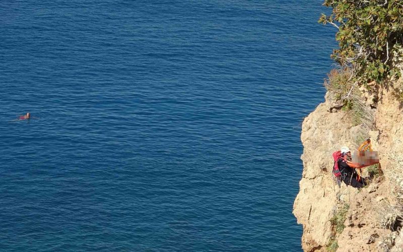 Antalya’da dört çocuk babası 44 yaşındaki adam falezlerdeki kayalık alanda ölü bulundu. Ölüm haberini duyan kardeşinin "abim ölmüş" feryatları yürekleri yakarken, cenaze 25 metre yükseklikten 2 saatlik operasyonla alındı. Operasyonu yüzerek açıldıkları denizden izleyenler ise deniz polisi ve sahil güvenlik ekiplerince uyarıldı.