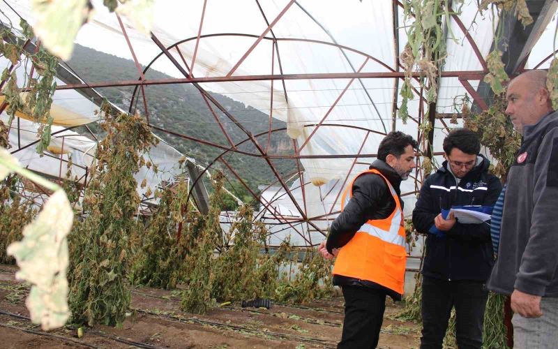 Finike’de hortumdan zarar gören seralarda hasar tespiti başladı