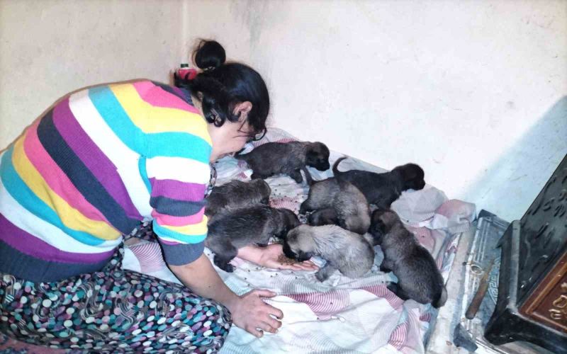 Fırtına sonrası devrilen ağaçların altında kalarak telef olan anne köpeğin yavrularına sahip çıktılar