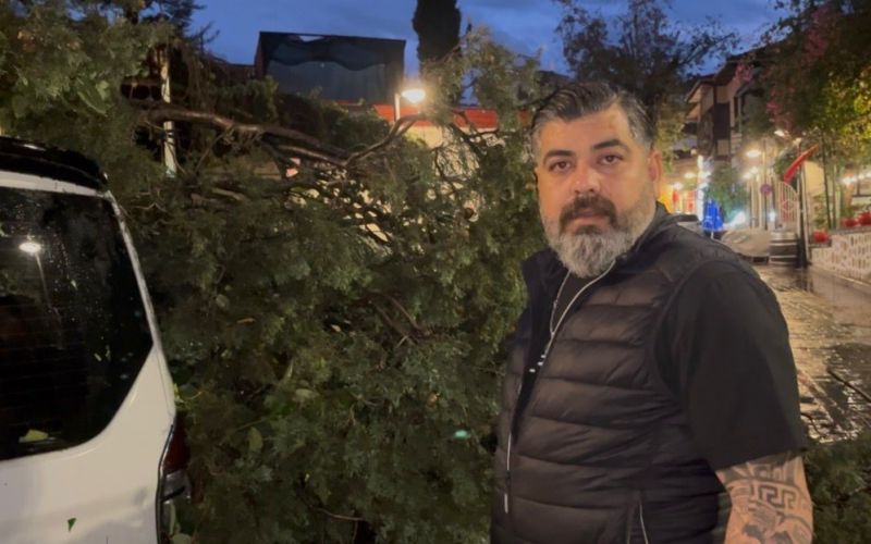 Aracını bırakıp müdürlüğünü yaptığı mekana koştuğunu söyleyen işletmeci Murat Kaya, "Yağmur başladı, aracımı bıraktım. Mekana doğru gittim. Yağmur durduktan sonra araca geldim ki ağaç fırlamış, aracın üstüne düşmüş. Aracın üst tarafı tamamen göçük şu anda. Arabamı nasıl yaptıracağım, kim karşılayacak onu da bilmiyoruz" dedi.