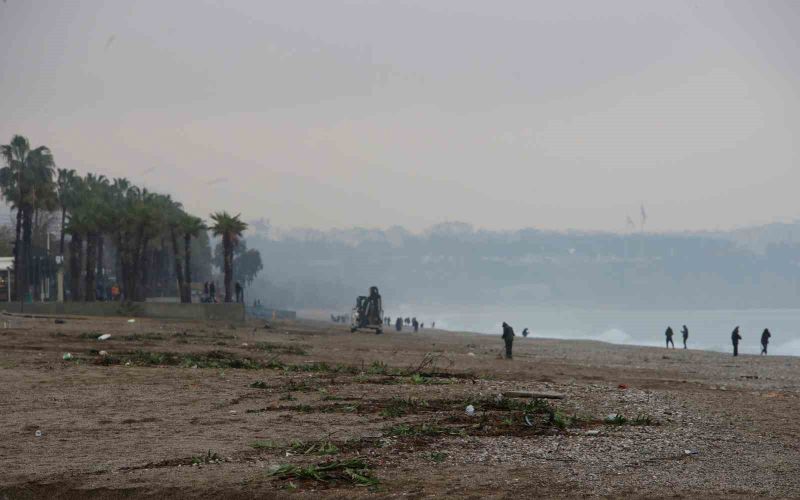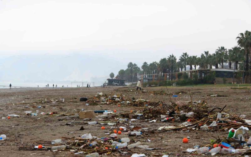 Antalya’da 3 gündür etkisini sürdüren sağanak yağış şiddetini azaltırken vatandaşlar sahile akın etti. Fırtınanın etkisiyle çöpler sahile vururken, bazı yollar da ise çökmeler meydana geldiği görüldü.