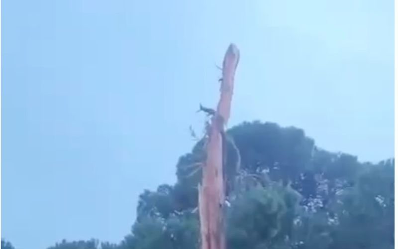 Golf sahasına düşen yıldırım ağacı parçalara ayırdı