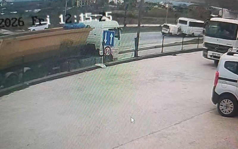 Hafif ticari aracın karayolunda arkadan gelerek midibüse çarpması ve midibüsün kontrolden çıkarak yolun sağına doğru devrildiği anlar güvenlik kamerasına an be an yansıdı