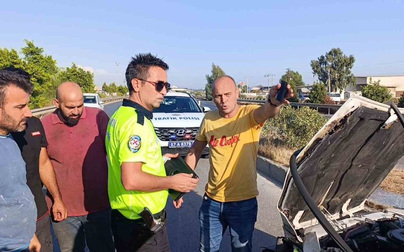 112 Acil Çağrı Merkezine gelen araç içerisinde sıkışan vatandaşlar olduğu ihbarı 112 Sağlık, Antalya Büyükşehir Belediyesi İtfaiyesi Manavgat Birimine bağlı Kurtarma ve Manavgat Emniyet Müdürlüğü Trafik Denetleme Büro Amirliği ekiplerini alarma geçirdi. Ekipler olay yerine ulaştığında hurdaya dönen otomobil içerisinde sıkışan otomobil sürücüsü Süleyman Z.Y. ve otomobilde yolcu olarak bulunan Mehmet A.Y.’nın vatandaşlar tarafından otomobilden çıkarıldığı gözlendi. Yaralılar 112 sağlık ekiplerinin olay yerindeki müdahalesinin ardından ambulansla hastaneye götürüldü.