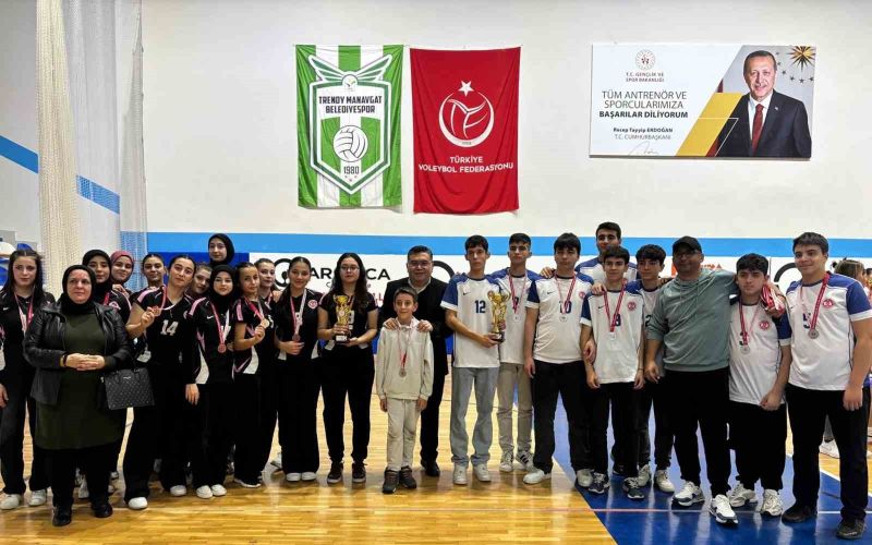 İlçe Okul Sporları Tertip Komitesi organizatörlüğünde, kızlarda 26, erkeklerde 9 olmak üzere 35 takım ve 480 sporcunun katılımıyla geçtiğimiz günlerde Mehmet Akif Ersoy Spor Salonu’nda gerçekleştirilen 2025-2026 eğitim öğretim yılı Manavgat okulları arası voleybol gençler müsabakaları final karşılaşmalarıyla sona erdi. Manavgat Anadolu İmam Hatip Lisesi kız takımı yarı final oynayarak 3.’lük kupasını, erkek takımı ise final oynayarak 2.’lik kupasını kaldırmaya hak kazandı.