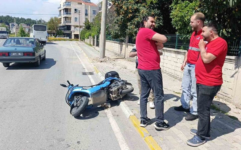 Kaza; Manavgat ilçesi Yukarı Pazarcı Mahallesi Mimar Sinan Caddesi’nde meydana geldi. Edinilen bilgiye göre, Zeynel Şenol Köprüsü istikametine seyir halindeki Ahmet M.’nin kullandığı 07 ALU 972 motorlu bisiklet sokak kesişimine geldiğinde, girilmez levhası olmasına rağmen sağ şeritten aniden sol tarafa dönerek karşı yönden sokağa girmeye kalkan Mehmet D.’nin kullandığı 07 LLU 26 plakalı otomobille çarpıştı. Kazayı gören vatandaşların ihbarı ile olay yerine polis ve sağlık ekipleri sevk edilirken, kazada yaralanan motorlu bisiklet sürücüsü 112 sağlık ekiplerinin olay yerindeki müdahalesinin ardından ambulansla hastaneye kaldırıldı.