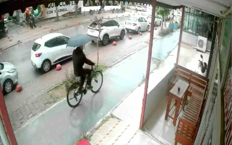 Antalya’nın Serik ilçesinde çaldığı bisikletle seyir halindeyken gözüne park halindeki motosikleti kestiren hırsızlık şüphelisi, çaldığı bisikleti bırakıp yoluna motosikletle devam etti. Hırsızın pes dedirten takası güvenlik kamerasına anbean yansıdı.