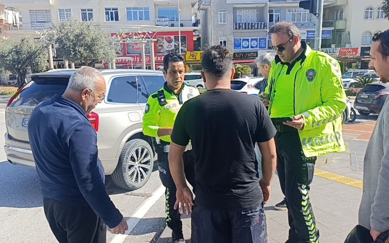 Olay yerine gelen trafik polisi kazada yaralanan olmadığı için yaptığı alkol kontrolünün ardından kendi aralarında rapor tutacaklarını belirtirken, motosiklet sürücüsü yaralı olduğunu belirterek ambulans çağırdı. Adrese gelen Manavgat Emniyet Müdürlüğü Trafik Denetleme Büro Amirliği ekipleri yaptıkları kontrolde motosiklet sürücüsünün ehliyetinin yetersiz olduğunu, kaza sırasında kaskı olmadığını belirleyerek 12 bin 870 TL para cezası uyguladı. Trafik ekibi ayrıca otomobil sürücüsüne de indirme-bindirme kuralını ihlal ettiği için bin 246 TL para cezası uyguladı. Yaralı sürücü olay yerine gelen 112 sağlık ekibi tarafından hastaneye götürüldü.
