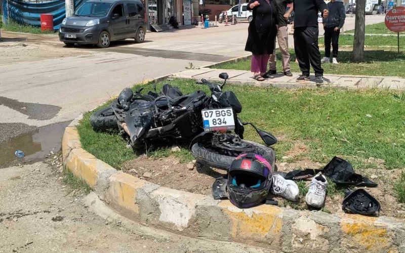 Antalya’da yol yapım çalışması nedeniyle daralan yolda önünde ilerleyen otomobile çarpan motosiklet sürücüsü kadın, karşı şeritten gelen minibüsün altında kaldı. İtfaiye ekiplerince yaralı olarak araç altından çıkartılan motosikletli, yaralı olarak hastaneye kaldırılırken, kaza anı güvenlik kamerasına yansıdı.