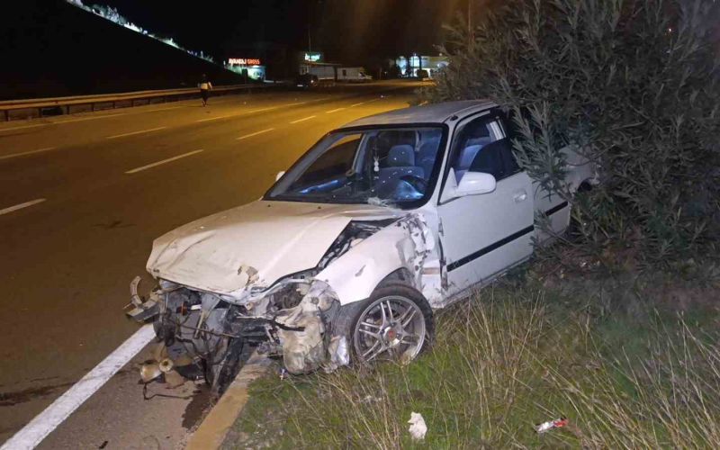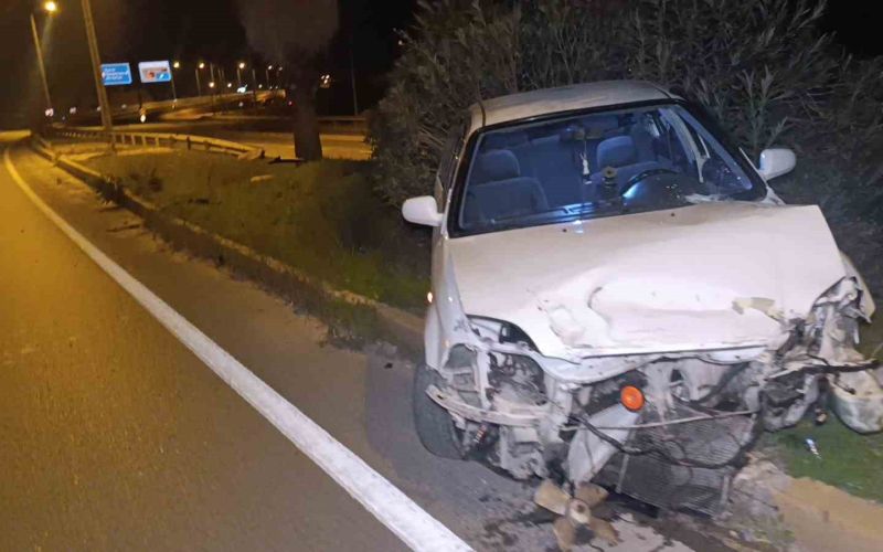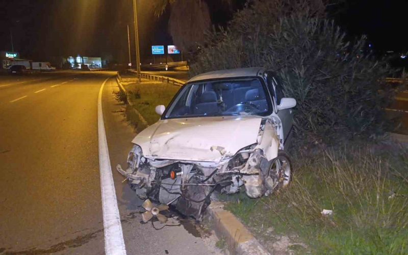 Antalya-Alanya D-400 Karayolu’nda bariyerlere çarptıktan sonra refüjde bırakılan otomobilin sürücüsü, ekiplerin çağırmasıyla olay yerine geldi.