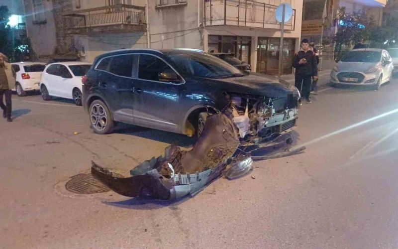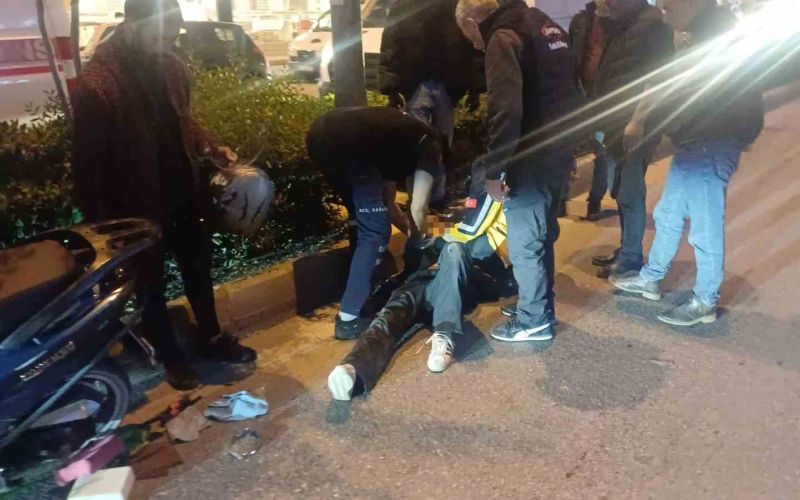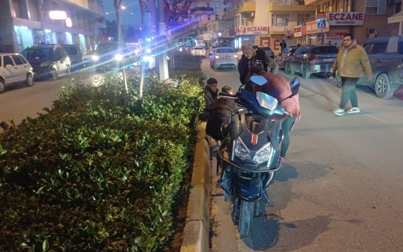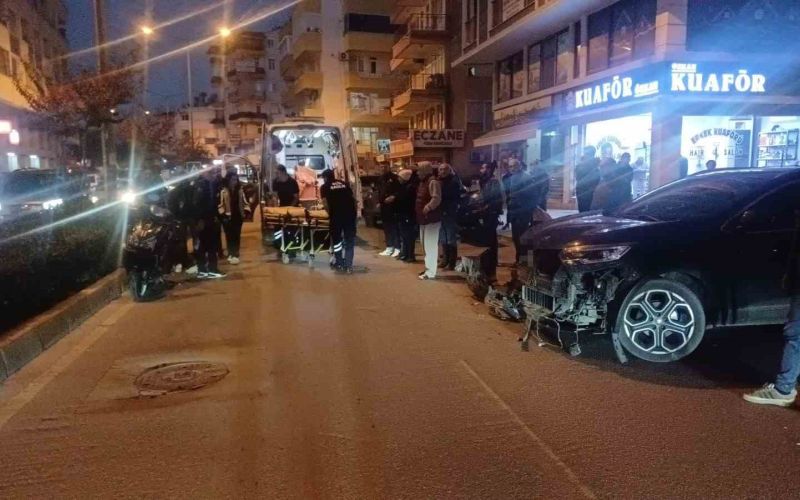 Antalya’nın Manavgat ilçesinde seyir halindeki motosiklet sokaktan çıkan araca çarptı.