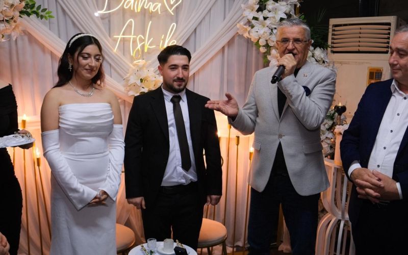 Kız isteme töreninin de Kadınlar Lokali’nde yapıldığı nişan merasiminde konuşan Başkan Topaloğlu, genç çifte evlilikle ilgili tavsiyelerde bulunarak, Kalkan ve Katrancı ailesini tebrik ettiğini söyledi.