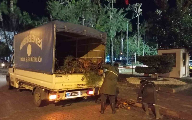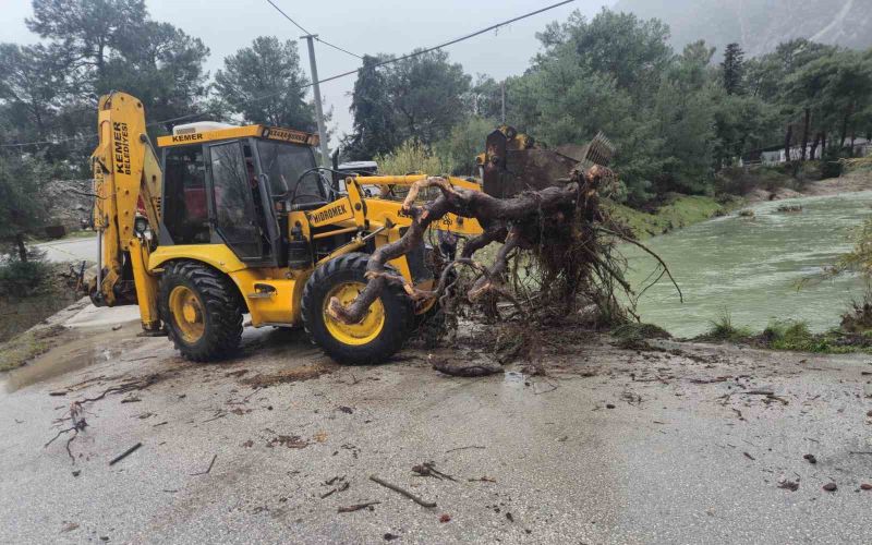 Kemer Belediye ekipleri, Beldibi Mahallesi’nde şiddetli sağanak nedeniyle dağlık alandan koparak akıntıyla birlikte gelen ve köprüleri tıkayan tomruklar ile atıkların temizliğini yaptı.
