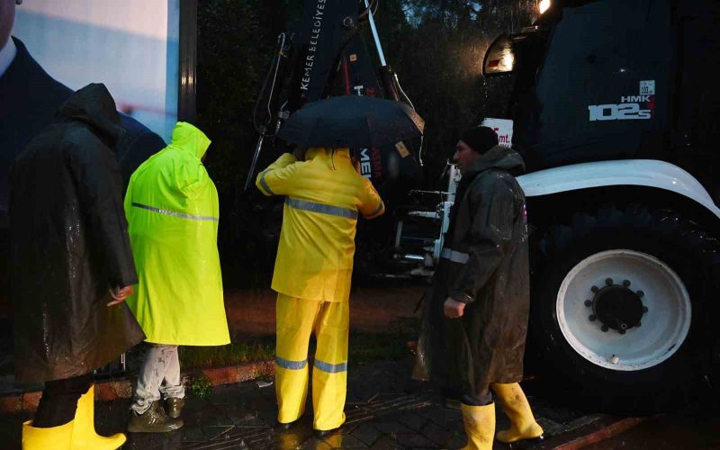 Meteorolojinin şiddetli yağış uyarısının ardından Antalya’nın Kemer ilçesinde etkili olan sağanak, bazı yollarda su taşkınlarına ve baskınlara neden oldu. Kemer Belediye Başkanı Necati Topaloğlu, çizmesini ve yağmurluğunu giyerek, belediye ekiplerini yönlendirdi. Başkan Topaloğlu çalışmalar sırasında Çamyuva Mahallesi’nde yer alan Mehtap Sitesi’nde mahsur kalan 4 çocuk ve yaşlı bir kadını belediye ekipleri ve jandarma ile birlikte kepçe yardımıyla kurtardı.