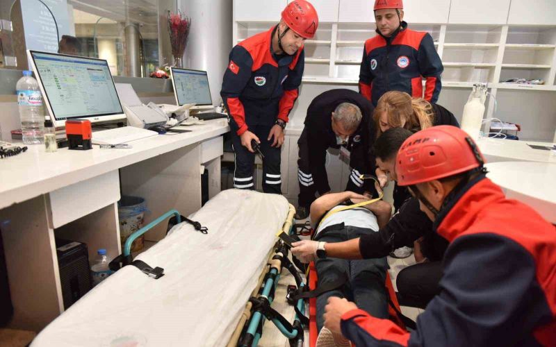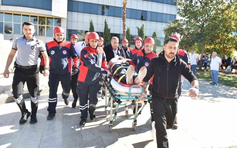 Kepez Belediyesi’nin düzenlediği deprem, yangın ve tahliye tatbikatı gerçeğini aratmadı. Senaryo gereği 5.1’lik depremde çıkan yangında mahsur kalan ve deprem anında kaçarken yaralanan personel ekipler tarafından kurtarıldı.