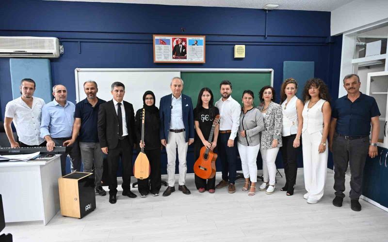 Kepez Belediyesi, Habibler Mahallesi’nde bulunan Şehit Celal Özcan Anadolu Lisesi’ne müzik sınıfı kazandırdı. Okul yönetiminin talebi üzerine hayata geçirilen proje kapsamında, mevcut 48 metrekarelik sınıf tadilatla baştan sona yenilendi. Zeminden boyaya, perdeden mobilyalara kadar her ayrıntının düşünüldüğü sınıf, öğrencilerin müzik eğitimine uygun şekilde donatıldı. Müzik sınıfında öğrencilere daha konforlu bir ortam sunulması için ses yalıtımlı bir alan oluşturularak bateri için özel bir bölüm hazırlandı. Kepez Belediye Başkanı Mesut Kocagöz, okul yönetiminin talebi doğrultusunda müzik sınıfı kazandırılan Şehit Celal Özcan Anadolu Lisesi’ni ziyaret etti. Burada genç yeteneklerin saz, gitar ve piyano gibi çeşitli enstrümanlarla hazırladığı mini konseri ilgiyle dinleyen Kepez Belediye Başkanı Mesut Kocagöz, öğrencilerin seslendirdiği eserlere alkışlarla eşlik etti.