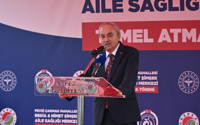 Antalya İl Sağlık Müdürü Prof. Dr. Behzat Özkan, Kepez’de bir hizmet seferberliği olduğunu belirterek, bir saat önce yine Kepez’de Fatma-Numan Sır Aile Sağlığı Merkezi ve Acil Sağlık Hizmetleri İstasyonu’nun açılışının yapıldığını bildirdi. 3 hekimli Bedia-Nimet Şimşek Aile Sağlığı Merkezi’nin de temelini atıyor olmanın mutluluğunu yaşadıklarını dile getiren Özkan, "Hayırseverimiz olmazsa olmazdı, Kepez Belediye Başkanımız olmazsa olmazdı. Allah razı olsun. İl Sağlık Müdürlüğümüz de işbirliği içinde çalışarak bu tesisin temel atma törenini hep beraber gerçekleştiriyoruz" ifadelerini kullandı.