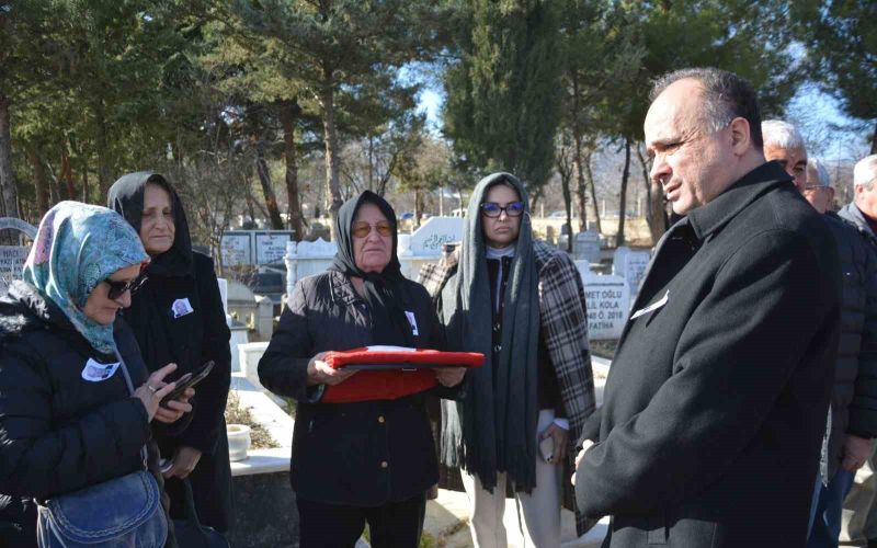 Defin sonrası Korkuteli Kaymakamı Sezgin Üçüncü, Şarlak’ın naaşı üzerindeki Türk bayrağı eşi Havva Şarlak’a teslim etti.