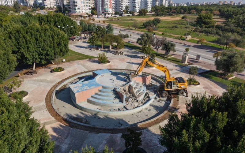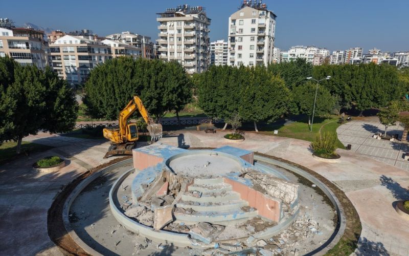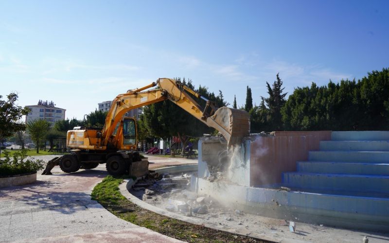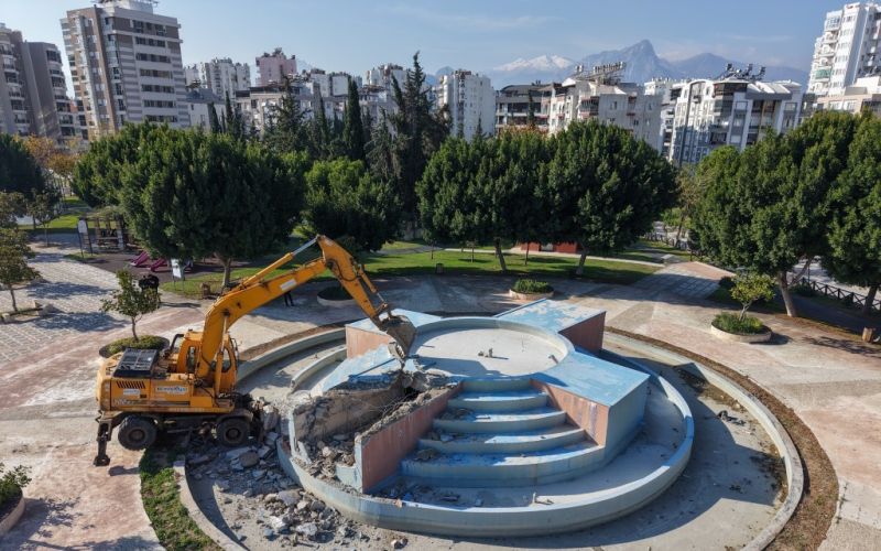 Konyaaltı Çayırlı Hacı Mustafa Karabulut Parkı’nda bulunan süs havuzu, iklim değişikliğine uyum ve su tasarrufu kapsamında kaldırıldı.