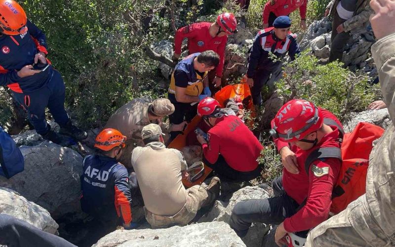 Antayla’nın Serik ilçesinde küçükbaş otlatmak için evinden çıkan ve geri dönmeyen yaşlı kadın yakınlarının ihbarı üzerine bir gün sonra kayalıkları arasındaki yaklaşık 5 metrelik yarıkta jandarma dronuyla yapılan taramada sıkışmış halde bulundu.