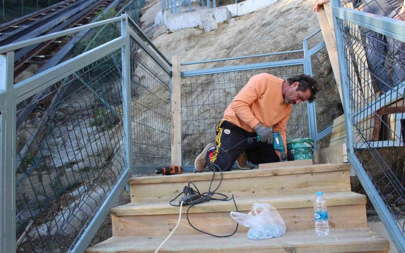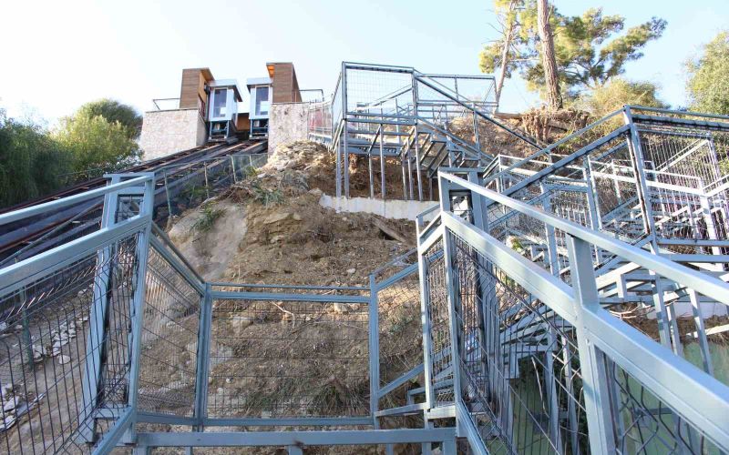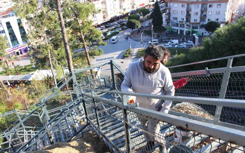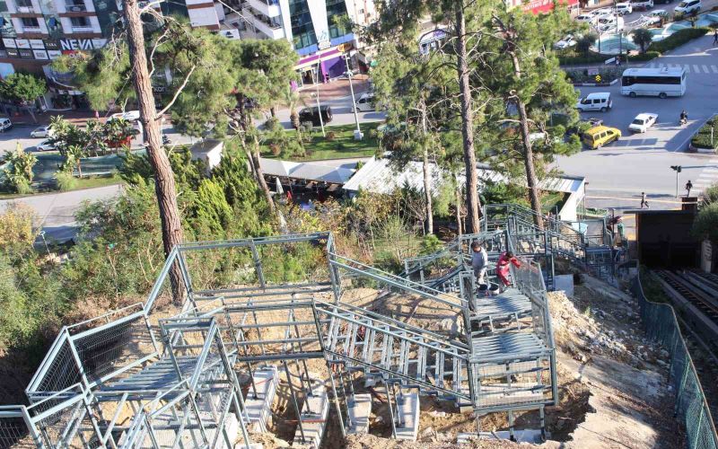 Antalya Büyükşehir Belediyesi Fen İşleri Dairesi Başkanlığı’nın kontrolünde gerçekleşen ve çalışmalarına 30 Kasım’da başlanan Türkbeleni Mesire Alanı’ndaki merdiven inşası hızla devam ediyor. Metal bölümleri tamamlanan merdivende son rötuşlar kaldı. Ahşap kaplama, boya ve aydınlatma işlemleri sonunda merdiven vatandaşların hizmetine sunulacak. Yaklaşık 4 milyon liraya mal olacak projeyle vatandaşların Türkbeleni mesire alanına daha kısa bir yoldan ulaşabilmeleri sağlanacak. Ayrıca merdivenin yanında bulunan yatay asansörün de tamir ve bakım işlemlerinin yurtdışından malzemelerin gelmesiyle şubat ayında tamamlanması hedefleniyor.