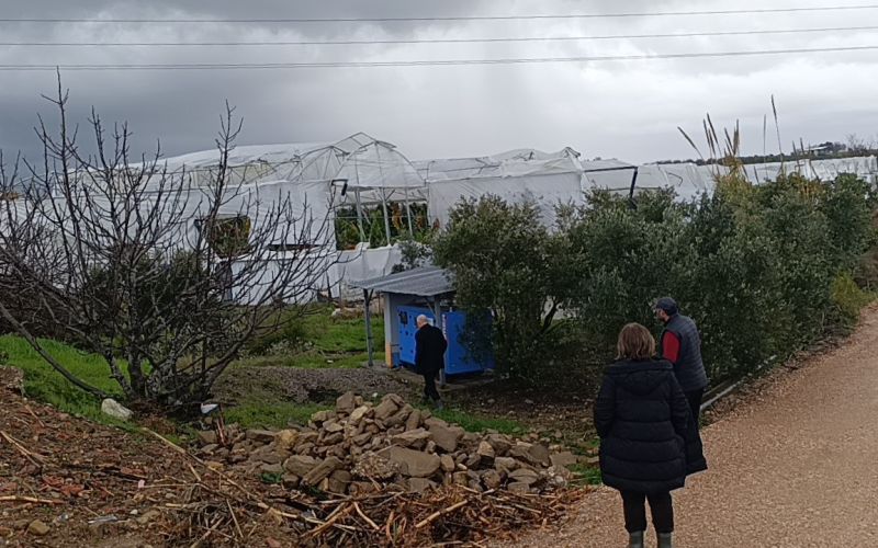 Denizyaka Mahallesi girişinde ise çilek seraları zarar görürken, gündüz toplanarak pazara götürülmeyi bekleyen çilek yüklü römork hortumla birlikte ters döndü.
