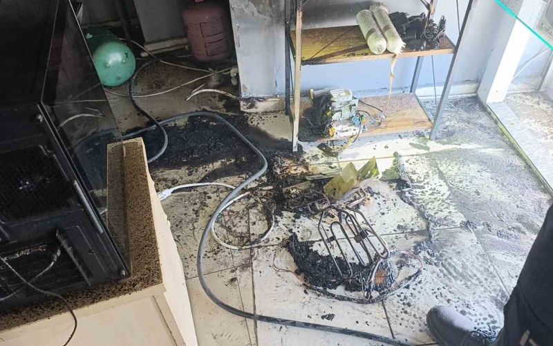 Elektronik eşya satış ve montajı yapılan işyerine gelen ekipler, içeriden dumanlar çıktığını görerek yangın tüpüyle yanan yere müdahalede bulundu ve kısa sürede yangını söndürdü. Duman tahliyesinin ardından işyerinde inceleme yapan ekipler, prizde bulunan elektronik aletlerden bazılarının tamamen yanmış olduğunu belirledi. Erken müdahale sayesinde yangının en az hasarla atlatıldığı bildirildi.