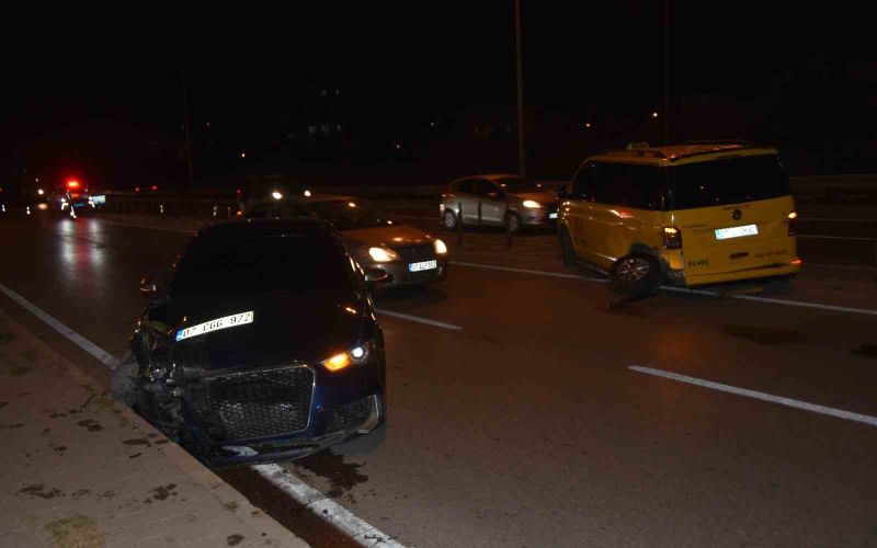 Kaza, Antalya-Alanya D-400 Karayolu Sorgun-Otogar Köprülü kavşak yan yolda meydana geldi. Edinilen bilgiye göre, Muhammed M. M. idaresindeki 07 CCG 972 plakalı otomobil, Ümit A. yönetimindeki 07 J 0680 plakalı ticari taksiyle çarpıştı. Çarpışmanın şiddetiyle otomobilde bulunan sürücü Muhammed M.M. ve yolcu Latife N.Y. yaralandı. Çevredekilerin ihbarı üzerine bölgeye polis ve sağlık ekipleri sev edildi. Olay yerine gelen sağlık ekiplerinin ilk müdahalesinin ardından yaralılar ambulansla hastaneye kaldırıldı. Kazayla ilgili inceleme başlatıldı.
