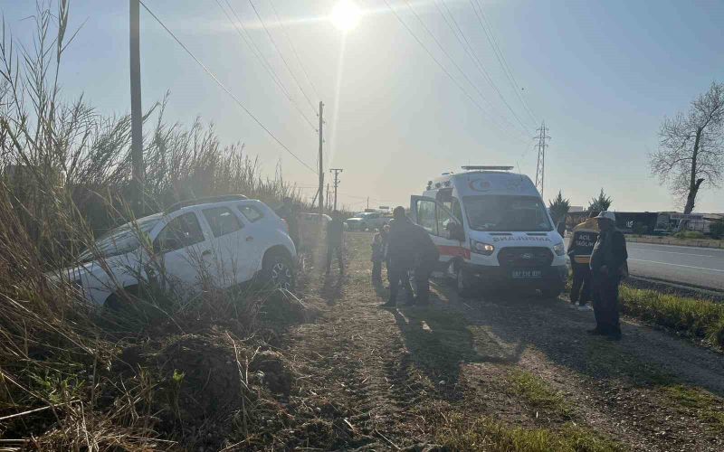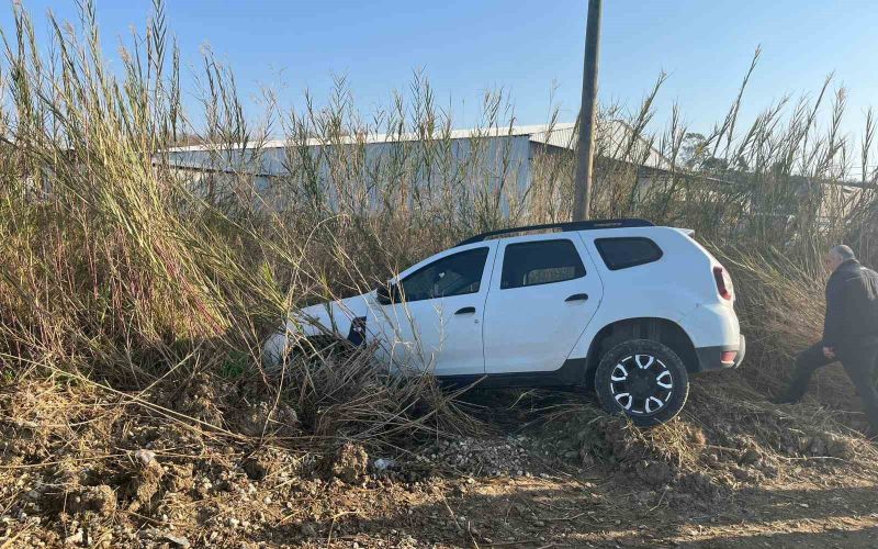 Manavgat’ta otomobil tarlaya uçtu, sürücü kazayı burnu bile kanamadan atlattı