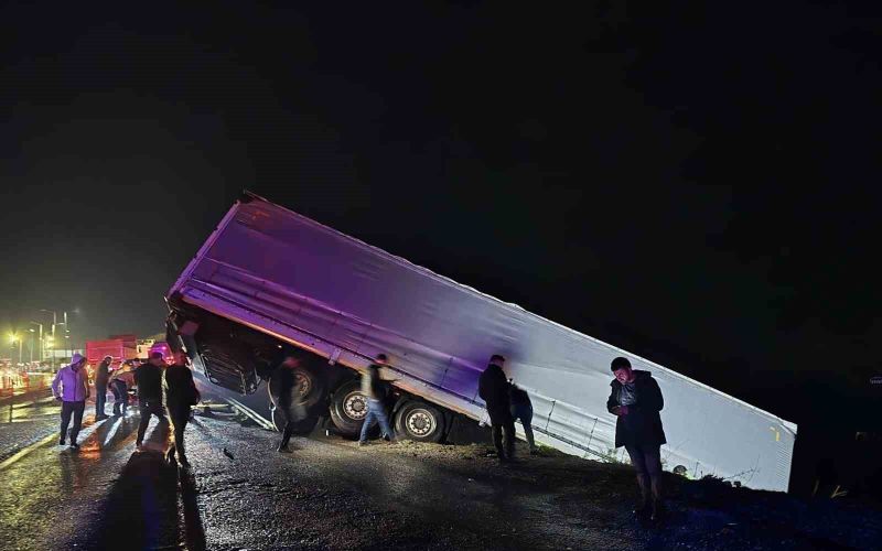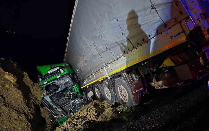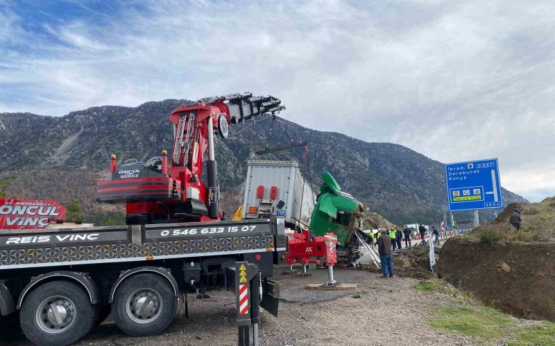 Manavgat’ta şarampole devrilen tırın sürücüsü ağır yaralandı